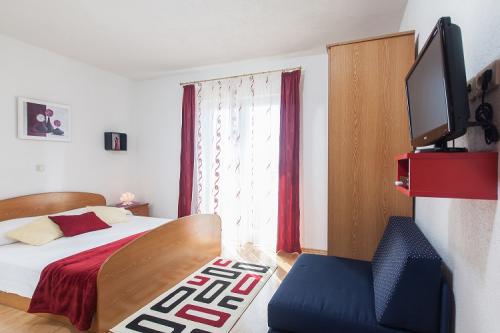 U apartmanu je soba s braÄnim krevetom i dodatnim ležajem po potrebi, mini kuhinja, SAT TV, WC, tuš kabina s fenom, balkon. Apartman je klimatiziran i ima parking.